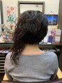 アシンメトリーの長い方をパーマ施術!短い方は少しだけど【ヘアドネーション】に!