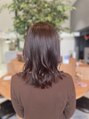 秋らしく暖かみのある色にベージュを混ぜて柔らかい印象に。顔周りにレイヤーを入れ、巻いたときに動きが出やすいように仕上げました。