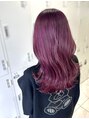 がっつりブリーチで深みのあるピンク♪紫寄りのがっつりピンクなので色落ちも薄めのピンクになってかわいいですブリーチで長期間楽しむなら、初めは濃いカラーにして色落ちを楽しむのがおすすめです!※クーポンはブリーチ料金が含まれていません