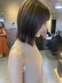 肩につくか付かないかのレングスは低めの位置であれば結ぶことができるので、乾かすスピードも速く、結べばスッキリする万能のスタイルです!カラーは黄色味を抑えたと透明感のあるグレージュです。