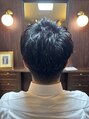 眼鏡をかけているということもあり、耳周りの毛をスッキリとさせていただきました。トップは束感が出るように間引きを入れています。こうすることで整髪料を付けた時に簡単に理想の束感を出すことができます。