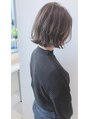 肩上の切りっぱなしボブ。量感調節でまとまりよくしています♪ カラーは、赤っぽく褪色しやすい髪なのでマット系の色で赤みをしっかり除去しつつ、グレー系の色で深みのあるグレージュに!