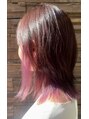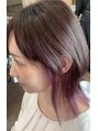 大人可愛い小顔ミディアムヘア!ブリーチ1回から2回ででからパープル系のインナーカラーです。30代40代50代の大人女性にも扱いやすいスタイルです。