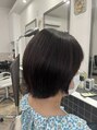 縮毛矯正をしてもできるマッシュショートショートカットで丸いフォルムをつくり、可愛らしさが入ることで女性らしいショートカット縮毛矯正による髪質改善がきいているので、艶のある表面の髪質が映える仕上がりです。