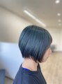 ウルフにするために伸ばしてた髪をばっさりショートに♪カラーはアンブレラカラーで今回はグリーンに♪髪質改善と一緒にする事で艶々の仕上がりに~