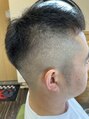 メンズショートのフェードスタイルです。頭頂部の長さを若干残しサイド、バックは高目に刈り上げる為うまくフェードでぼかしながらトップに繋げる技術者の技量とセンスが問われるスタイルだと思います。