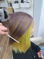 カラー:パープル+イエロートリートメント:ミルボン〔エクステ/髪質改善/酸熱トリートメント/ダブルカラー/ヘアセット/ブリーチが人気のメニュー!〕