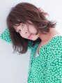 肩上で切ったボブスタイルにランダムなMixウェーブをオン♪程よい軽さのオススメスタイルです!前髪は束感を出して☆