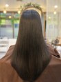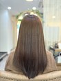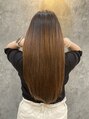 顔周りにレイヤーを入れる事で軽さをだし。縮毛強制でツヤ感を。そのままでもツヤサラヘヤでOK!!オイルでstylingすると完走防ぎツヤ感と束間が作れます。