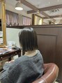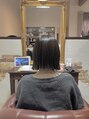 まだまだ人気の切りっぱなしボブカラーで変化をつけてイメチェン♪秋らしい、オリーブベージュで柔らかい透明感を強調してます。赤みのギラつきを抑えたくすみカラーは残暑の残る今の季節にぴったりのトレンドカラーです。