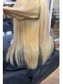 リタッチ、エクステでご来店いただきました今回僕が担当は初でダメージ、履歴がかなり複雑でした毛先と、抜けてないところと間に抜けてて切らずに繋いで行くため無理のない範囲でブロンドにして修正してます