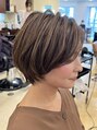 ★40代50代くびれショートカット白髪ぼかしハイライト根元パーマ
