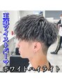 カット、ツイストパーマ、ホワイトハイライト