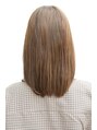 前髪を薄めにつくり、レイヤーを入れて動きをつけたセミミディアムスタイルです。アイロンで巻くスタイルなので毛先は厚めにカットするのがポイントです。カラーは8トーンのアッシュパールカラーでツヤ感と透明感をプラスしました!