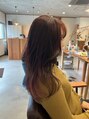 ベースはチョコレートカラー、ポイントカラーはブリーチをして赤が入っています。耳後ろに入れてあるのでアレンジしてもストレートでも巻いても可愛いです。