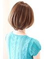 襟足すっきりとしたボブスタイルです。コロンとしたシルエットが女性らしい大人可愛いスタイルです。襟足ギリギリでカットしているスタイルなので首がスッと綺麗に見えます。毛先のほうにくにゃっとゆるめにニュアンスのパーマがかかっています。