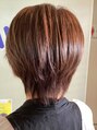 丸みがあり襟足はセニングで軽く、オーガニックアルカリカラーで明るく艶やかな髪色に
