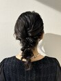 くしゅくしゅとした編みおろしアレンジです。毛先も結んでいるので巻きがとれる心配もないです。