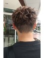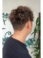 ツーブロックで、周りをスッキリとさせたスタイル。上部分は、アイロンセットもできやすい長さに。細めと太めとハイライトの太さを変えて、束感が出やすくしています。ブリーチ後、ピンク系くすみカラーを上からしています。