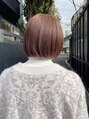 ピンクベージュ/レイヤーカット/ケアブリーチ/透明感カラー/ボブ