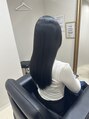 ブルーブラックカラーに染めて、頭浸浴ヘッドバスと髪質改善トリートメントで色持ち抜群ツヤ感たっぷりヘアーに