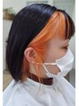ブリーチでしっかり抜いてから、淡いオレンジをいれました。