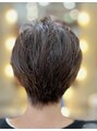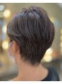 大人女性向けの品あるショートヘア。白髪をぼかしながら柔らかいベージュカラーで印象を軽やかに。襟足をタイトに抑え、若々しさを演出。