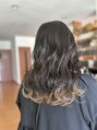 『ハイライト』と『ローライト』を施したデザインカラーになります。ベースはダークグレーでしっかり赤味を消してます。伸びてきた時に分かりにくくなるように根元は暗めにしてシャドウルーツ風にしてます♪動きのある巻き髪にしても可愛くなります。