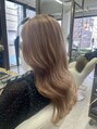 全体ブリーチを2回してからピンクベージュを重ねました♪ケアブリーチなのでダメージもほぼなく、透明感が抜群になり、色落ちが楽しめます♪全体ブリーチの場合はお電話でご予約ください。