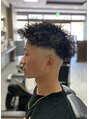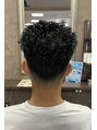 アップバングのスパイキーショートに、立ち上がりと動かしやすいツイストパーマで、超カッコいいメンズショートスタイルに。スタイリングしやすく外さない漢スタイルです。