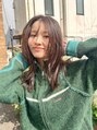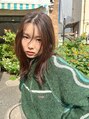 動きのあるセミロングレイヤー。顔周りにレイヤーを入れて今っぽいスタイルに。前髪は長めでシースルーにし、柔らかい印象に。