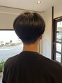 マッシュ・刈り上げ。前髪は流して、今回は左サイドを右と合わせるためにパーマ。パーマと分からないくらいにゆるく!