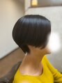 毛量が多く、くせで広がりがでやすい髪のお客様。硬くなりがちな毛質を、細かな毛量調整で柔らかな質感に♪トップは長く残しつつ、スッキリとしたラインのショートスタイルです。ブラウン系の美しく自然なカラーで艶やかな髪に◎
