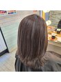 リタッチが気にならないようにベースは暗めにしてハイライト部分をなるべく明るめにしています。ハイライトはブリーチの抜け具合で色味の選定をトナーでしています!グレージュカラーは透明感があり人気のカラーです!