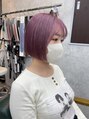 ペールピンク/切りっぱなしボブ/ブリーチダブルカラー