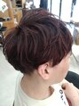 マッシュヘアにレイヤーを入れてゆるくパーマをかけて動きを出しました。ポイントでハイライトを入れてボルドーカラーをオンカラーして温かみをプラス