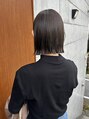 切りっぱなしボブ。バームやオイルをしっかりつけてタイトに仕上げるのがポイントです。