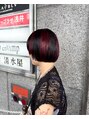 黒髪のボブに赤のセクションカラーで個性派デザイン!