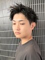 ツーブロックと刈り上げにソフトツイストパーマを合わせたアップバングスタイル。自然な動きで清潔感とおしゃれ感を演出します。ぜひお任せください!