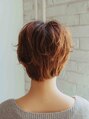 柔らかさのある大人ショートスタイル。すっきりとしたハンサムショートにワンカールパーマをかけることで女性らしさのある可愛いスタイルになります。透明感のあるカラーが顔まわりの明るさと軽さを出してくれます。
