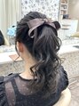 ふわふわポニーテール♪/アップヘア/アップスタイル/リボン/ポニーテールアレンジ/ヘアアレンジ/ヘアセット/結婚式お呼ばれヘア/二次会ヘア/参列ヘア