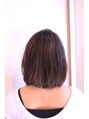 柔らかさをだすために少しパーマをかけてつくりすぎず、くずした感じのくしゃっとしたスタイリングでナチュラルなボブ。肩についてハネる感じもスタイリングとして楽しめます。