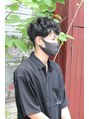 ツーブロックにカットしてから、しっかり目にパーマ。パーマがとれにくいように一工夫!
