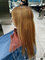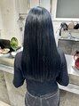 ブリーチからのダークトーンネビージュカラーです。黒っぽくも感じ、青味の透け感もあるおすすめカラーです。色落ちは黄色くならず、グレー系に落ちてくるので、長く色もちも楽しめるカラーです。