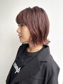 顎くらいの大人可愛いショートボブ。ピンクブラウンカラーで、透明感あるふんわり感と柔らかさをプラス。ナチュラルタイプのワックスを揉み込むだけの簡単スタイリング。
