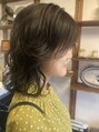 ロングレイヤーにしっかりめにパーマをかけたスタイル。長めのバングに根元の立ち上がりを意識してパーマをかけています。部分的にパーマの強さを変えてボリュームコントロールをしています。