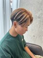 アンブレラカラーのデザインを少しずらすだけで雰囲気も見栄えも変わるのが特徴です☆色もホワイトパールでベースの黒髪との相性もバッチリ♪ボブの中でほんの少しの変化を与えたい方に大人気です☆