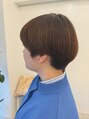 襟足スッキリのマッシュショートです。オイルで艶を出して細かい目のコームで整えるとトレンドの質感になります。マニッシュ、モードなファッションによく似合います。