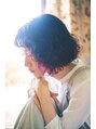 崩したボブにパーマでカールを加え、前髪とサイドのインナーにハイライト処理後カラークリームでカジュアルに♪