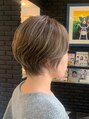 骨格を美しく見せるくびれショートに細めハイライトを入れてオンカラーでグレージュカラーに仕上げました。